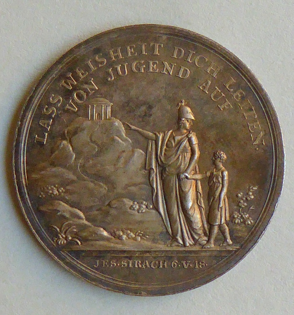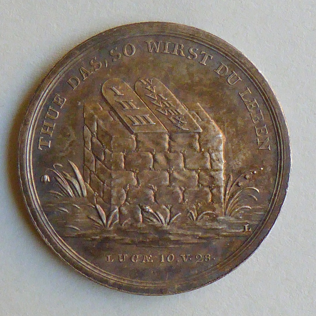 Devotiepenning met "Lass Weisheit dich leiten ...", kz. met "Thue das so wirst du leben"