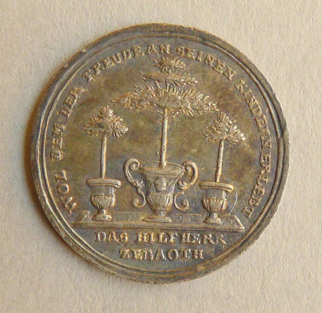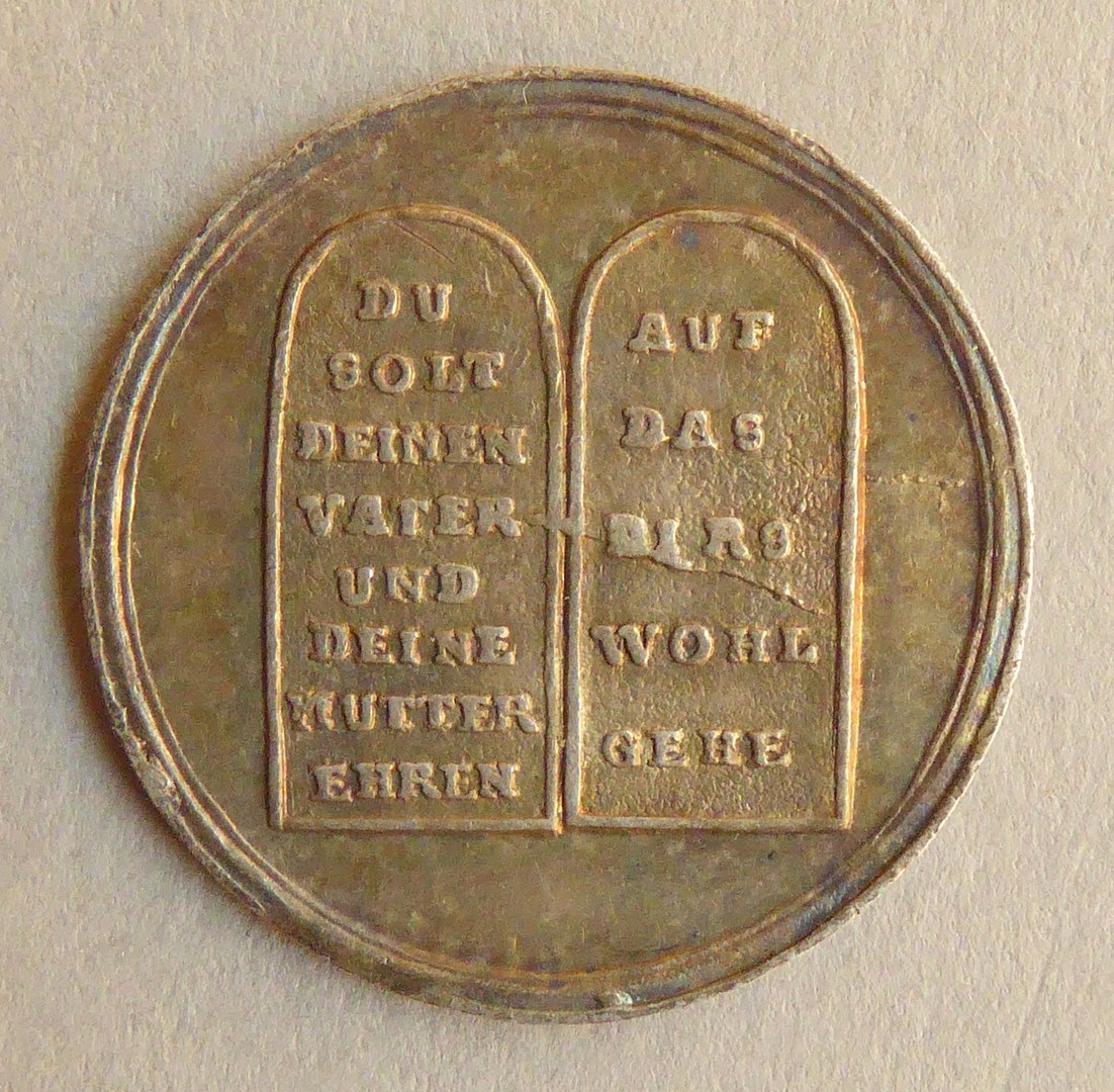 Penning met "Wol dem der Freude an seine Kinder erlebt ...", kz. Du sollst deinen Vater und ..."