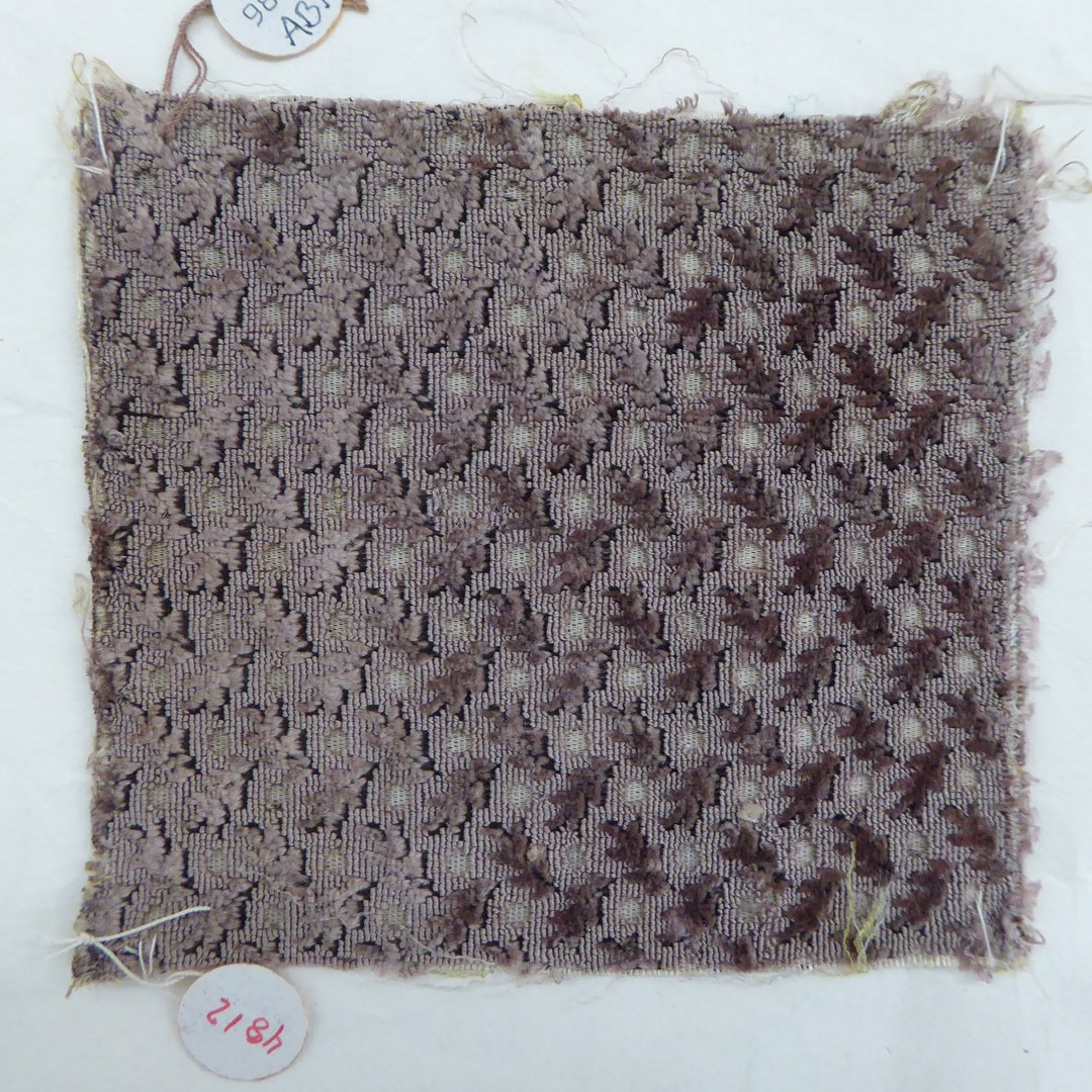 Grijsbruin fluweel met eikblaadjes en rondjes