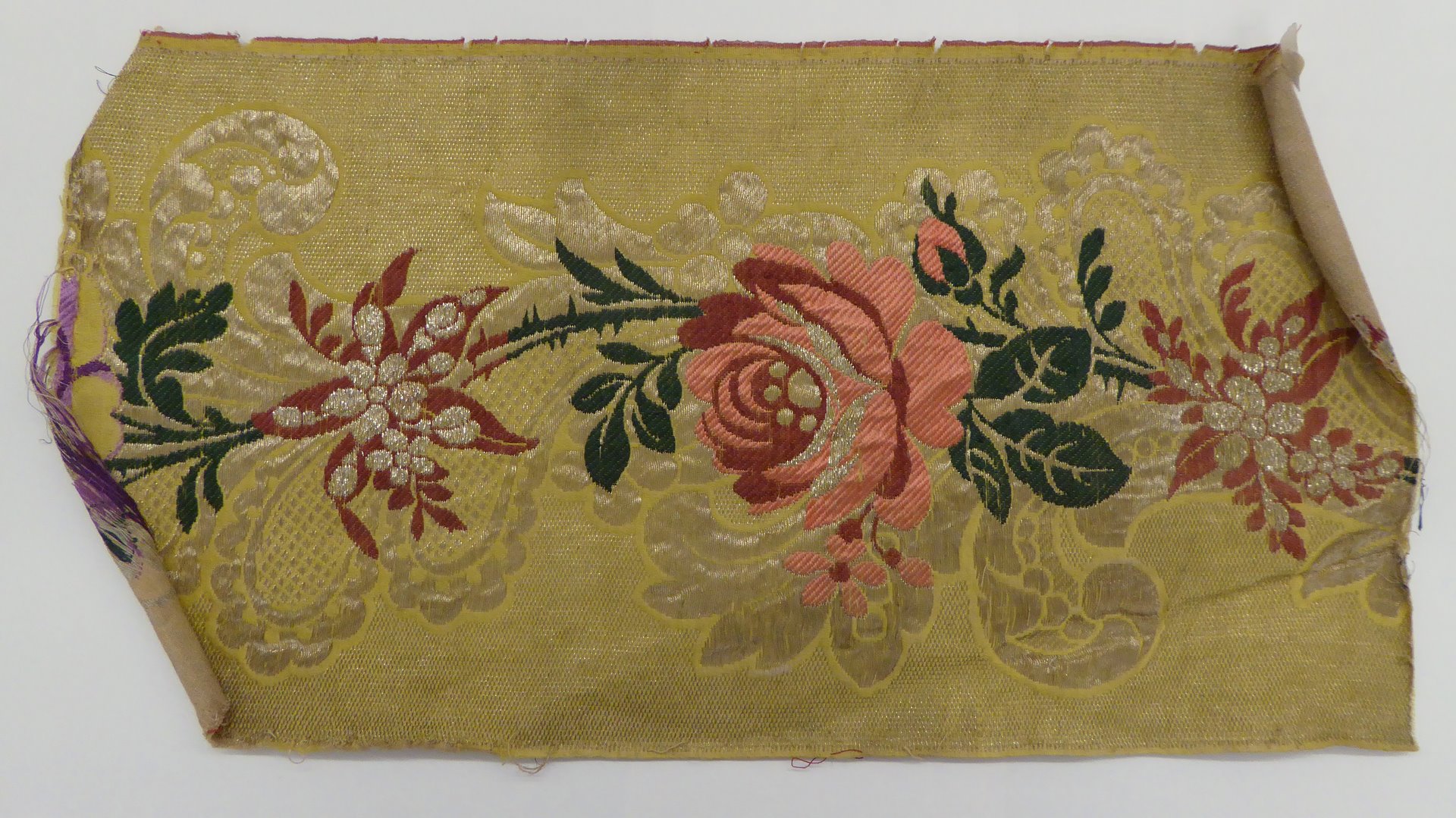 Gele halfzijde met rode bloemranken