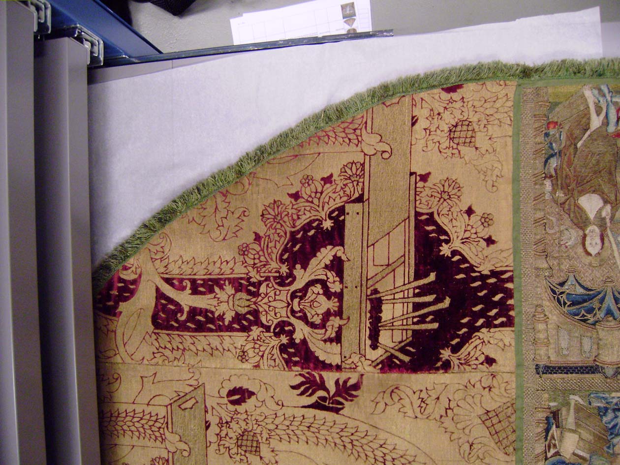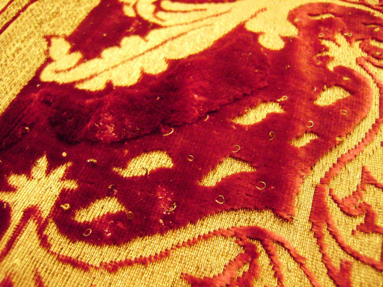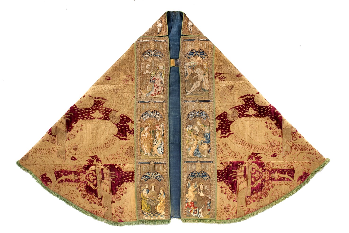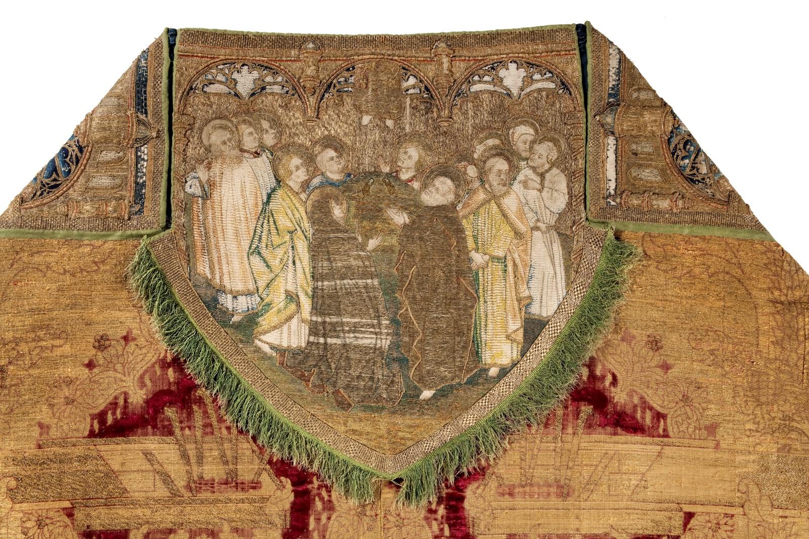 Rode koorkap van bisschop David van Bourgondië met voorstellingen uit het leven van Christus