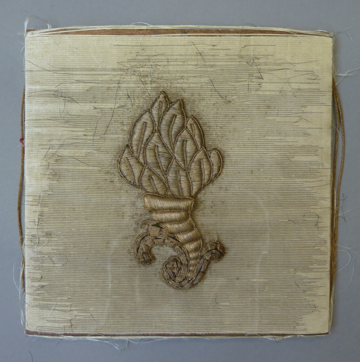 Witte beurs met cornucopia van gehoogd gouddraad