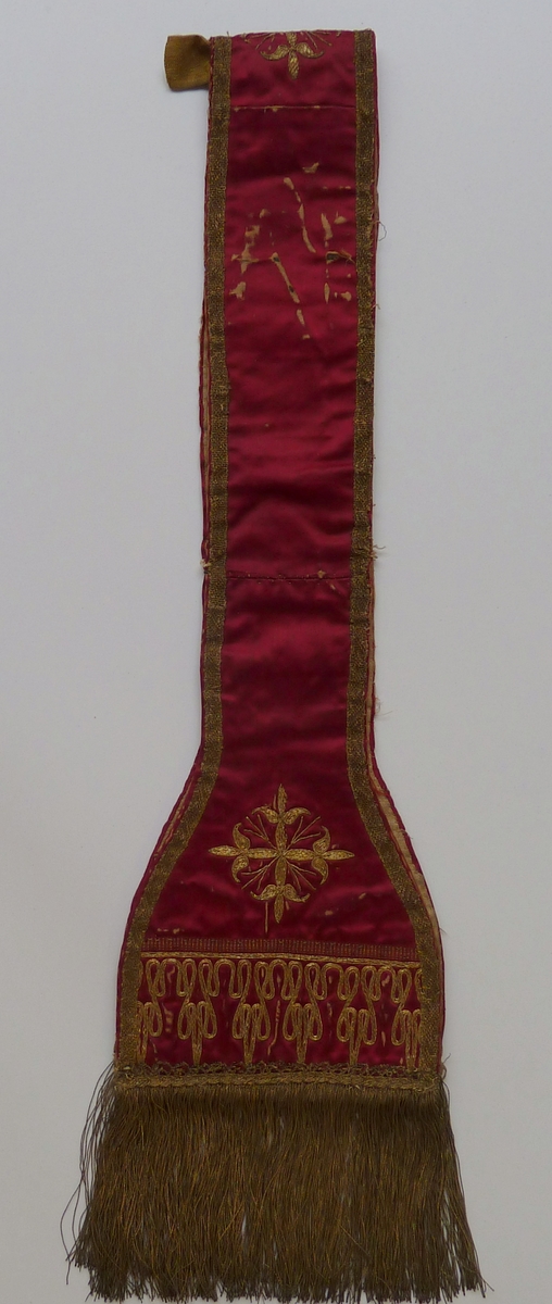 Rode manipel met gouddraad leliekruisjes en pailletten