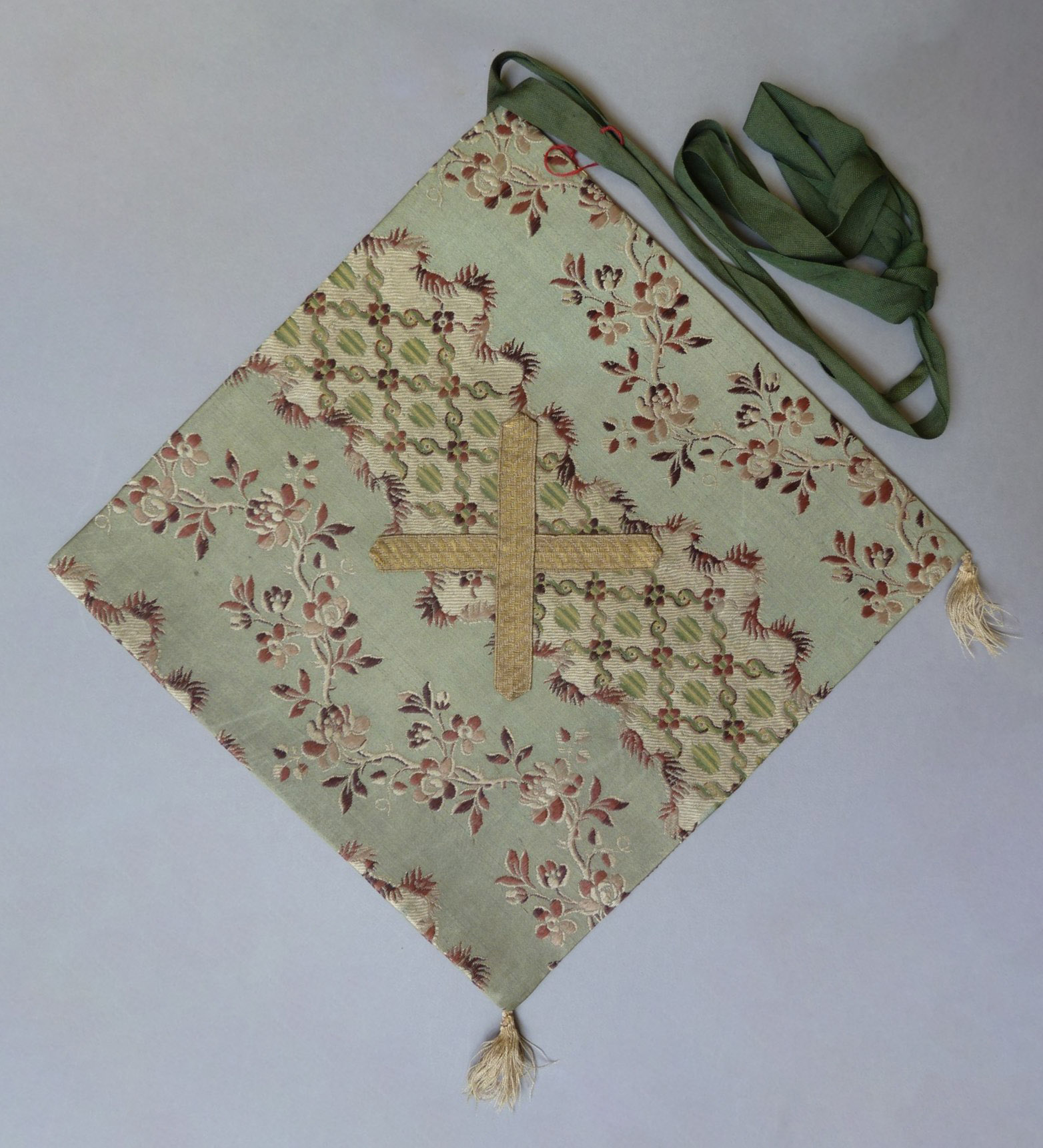 Groene epigonation (kniestuk) van gebrocheerde Lyonse zijde met kruis van goudgalon, gebruikt bij Oosterse ritus