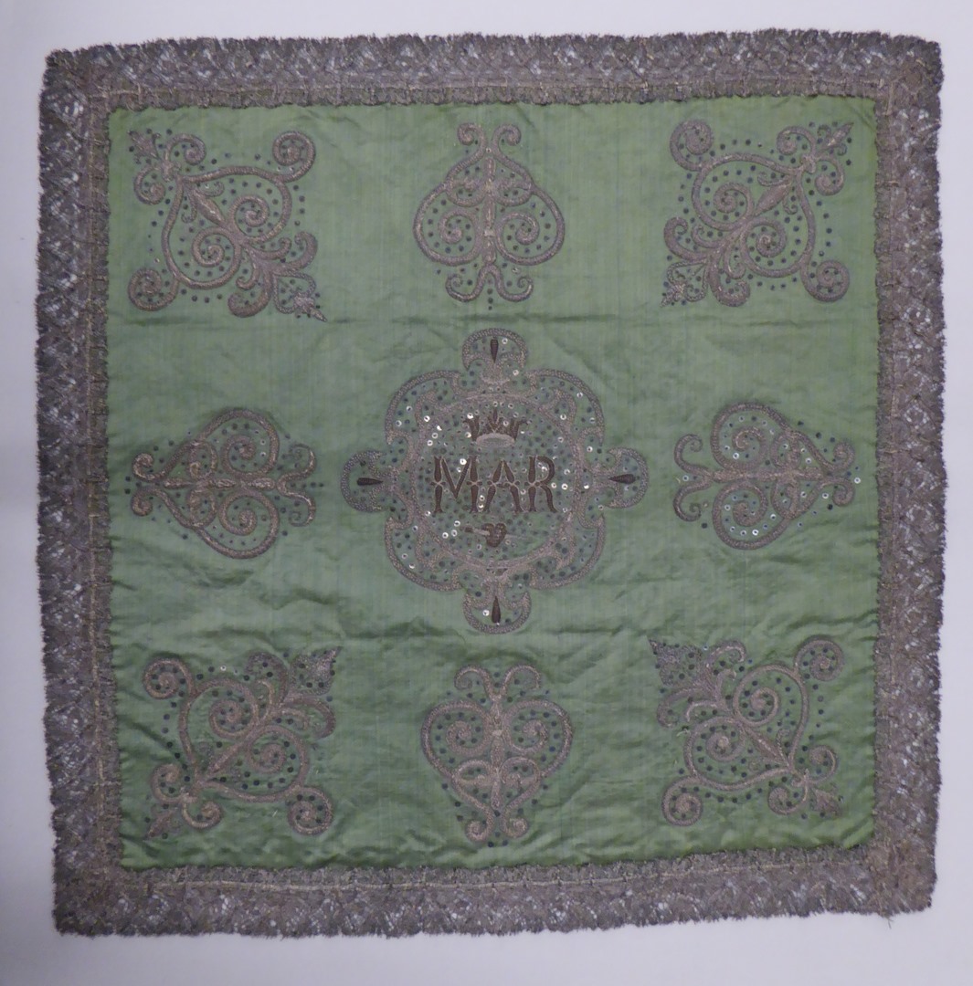 Groen kelkvelum met cartouche waarin kroon, "MAR" en met zwaard doorboord hart