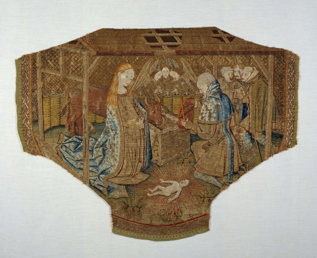 Koorkapschild (fragment) met geboorte van Christus, aanbidding der herders