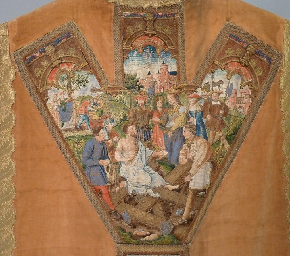Bleekroze kazuifel met ontdekking H. Kruis door keizerin Helena