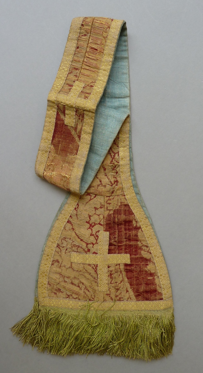 Rode manipel van fluweelbrokaat met ingeweven rankenpatroon