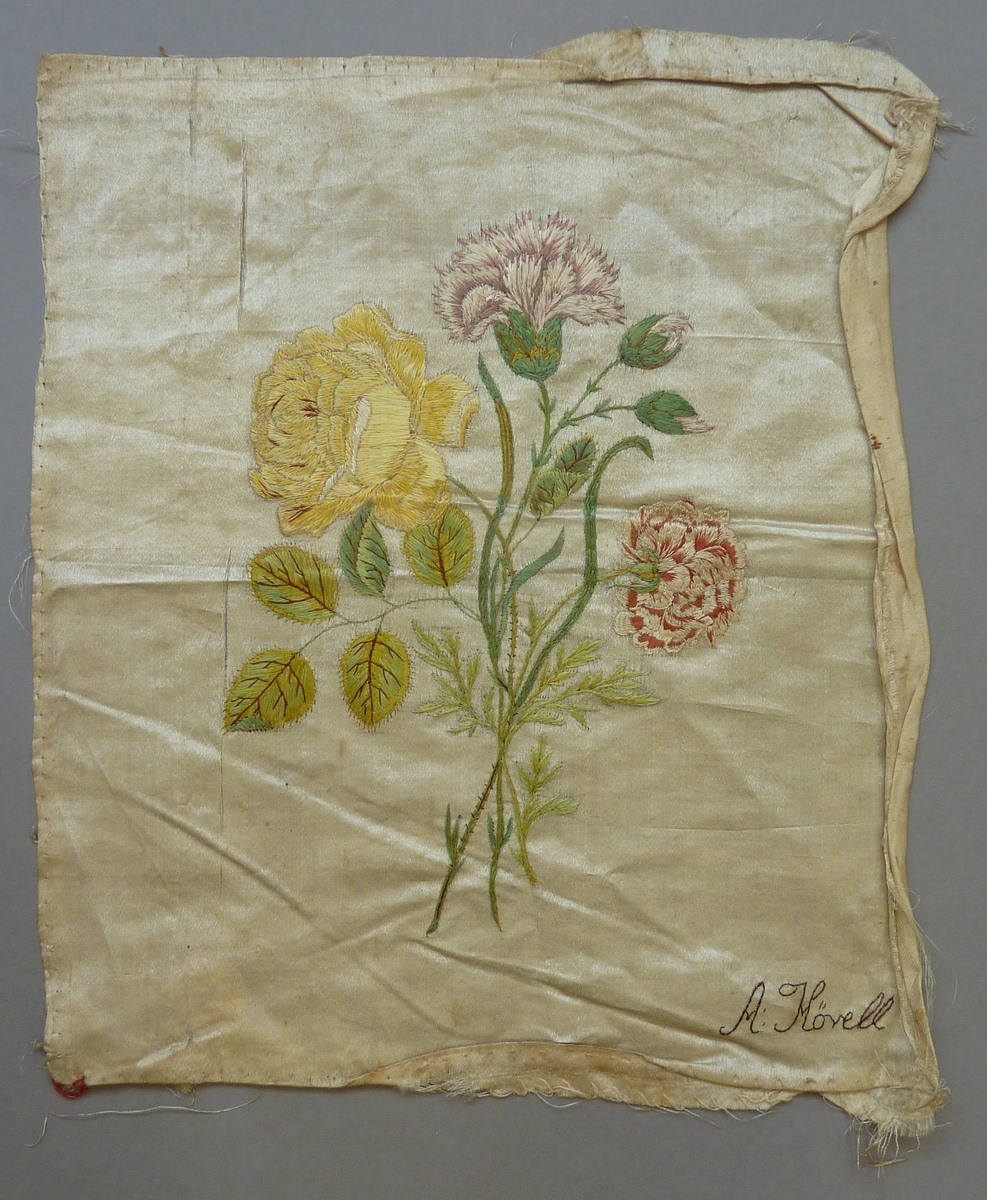 Borduurwerk op wit fond met tuiltje bloemen