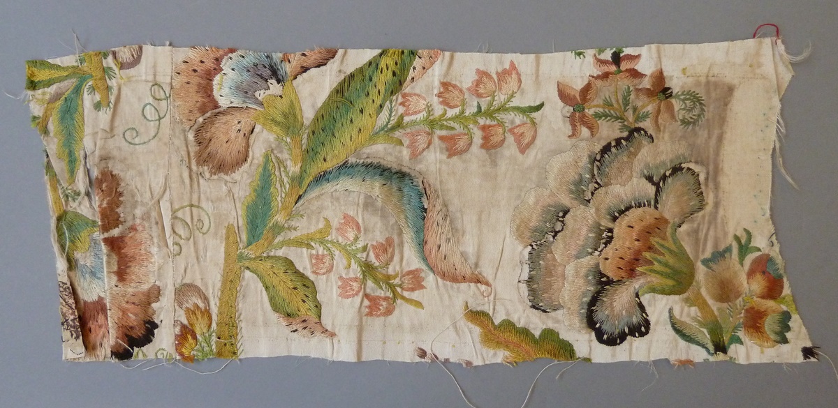 Borduursel op witte zijde met bloempatroon