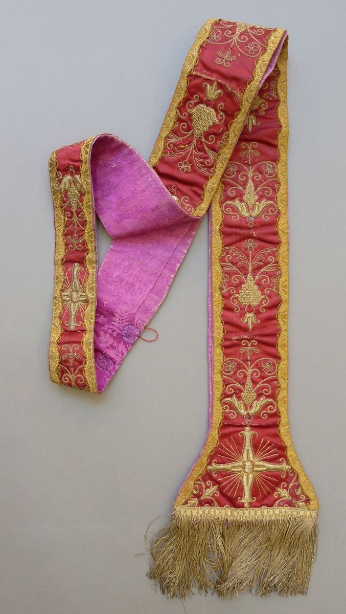 Rode stola met rankenvaasjes van gouddraad
