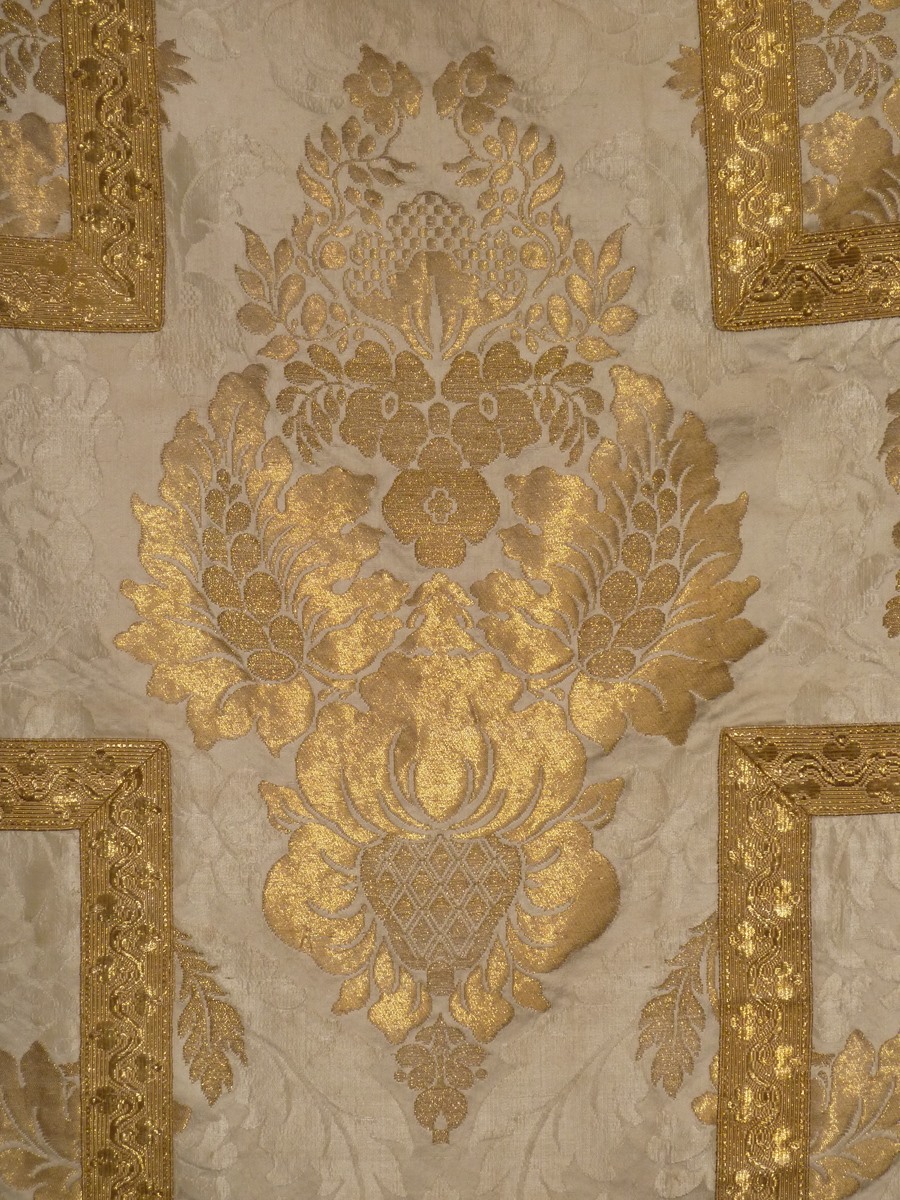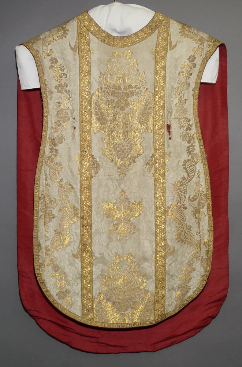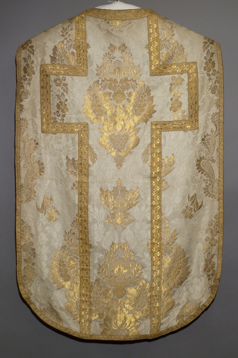 Wit kazuifel van goudbrokaat met ingeweven bloempatroon