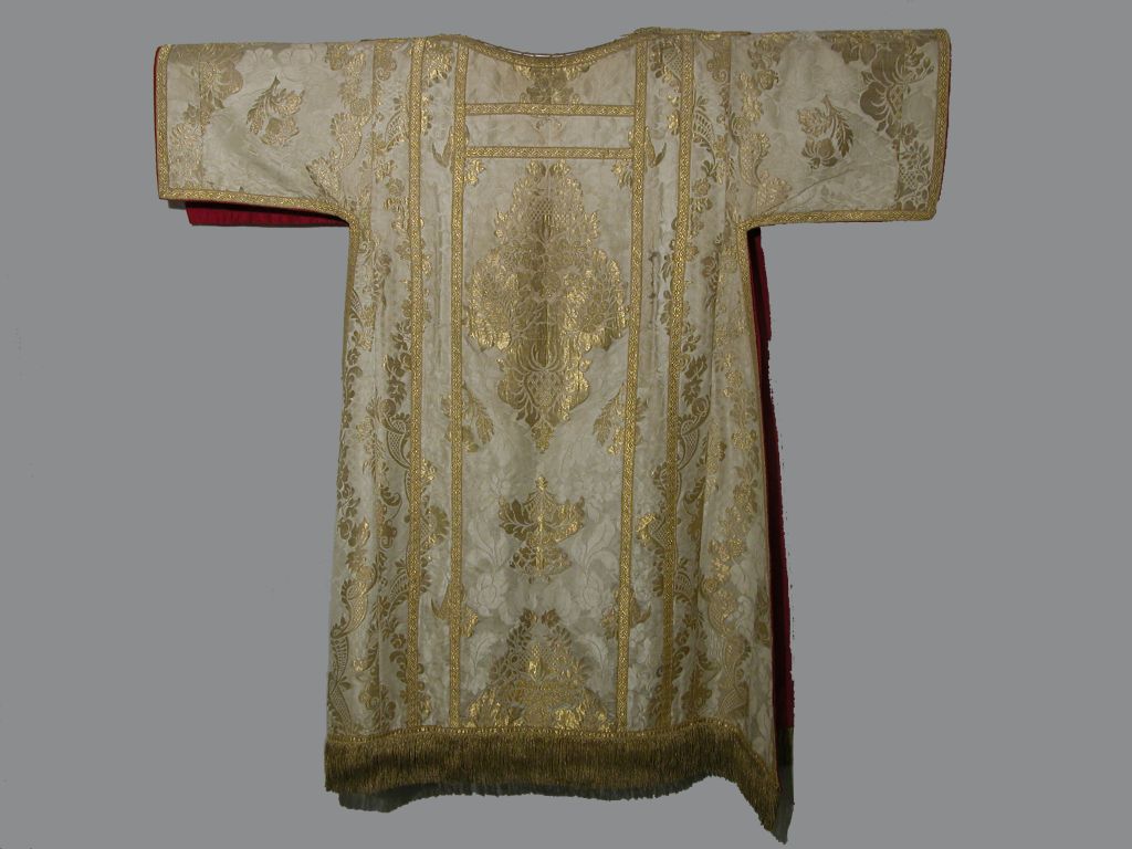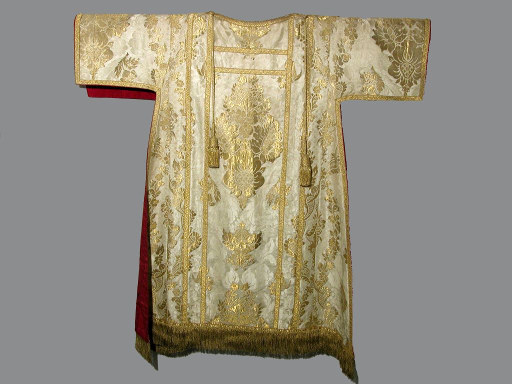 Witte dalmatiek van goudbrokaat met ingeweven bloempatroon