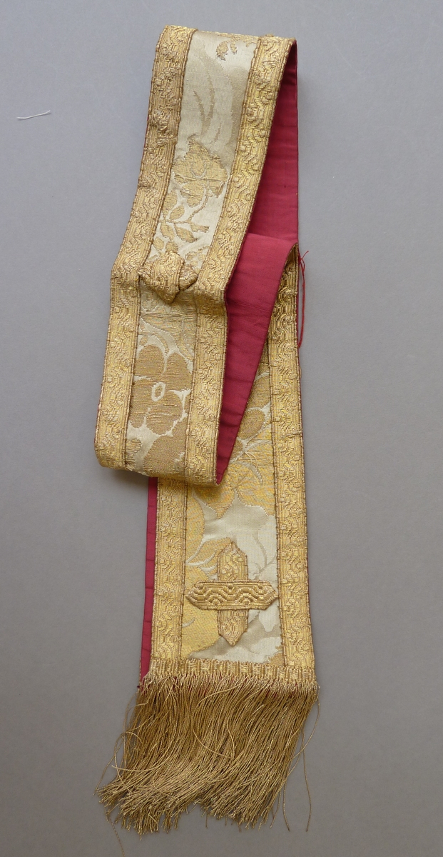 Witte manipel van goudbrokaat met ingeweven bloempatroon