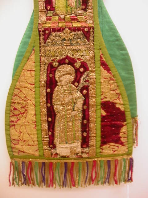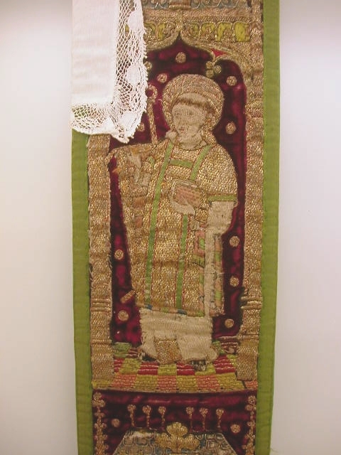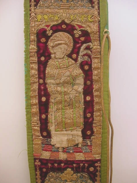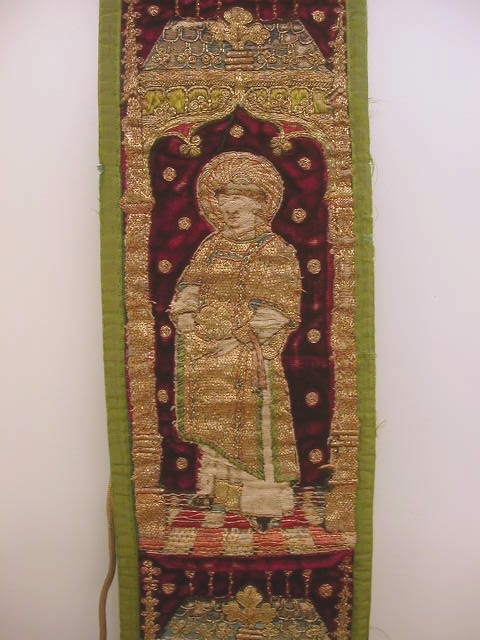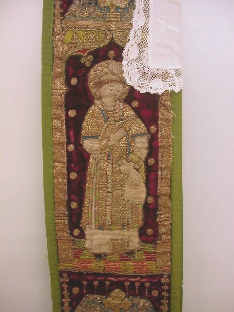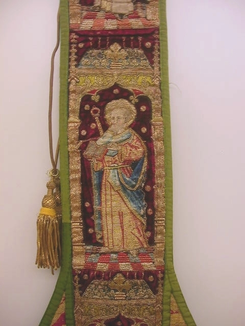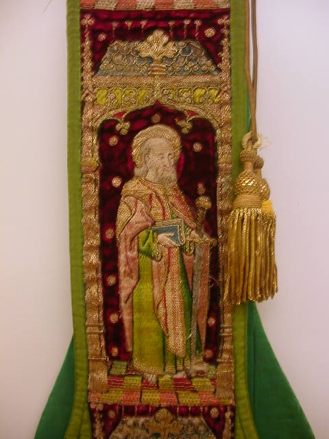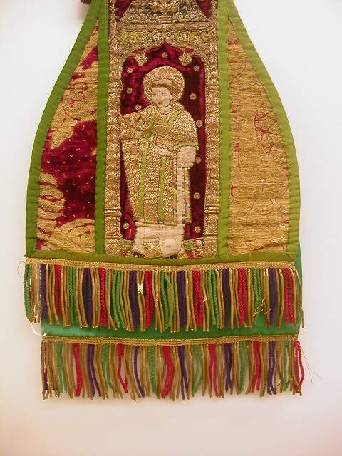 Rode preekstola met granaatappelmotief en heiligen, met kwast