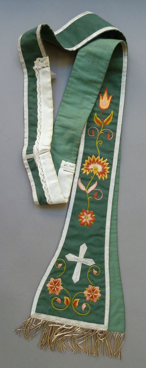 Groene stola geborduurd met bloemen en ranken