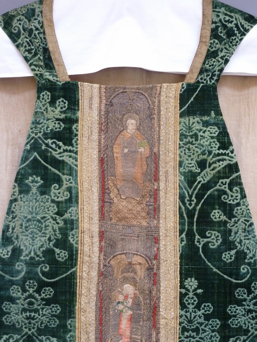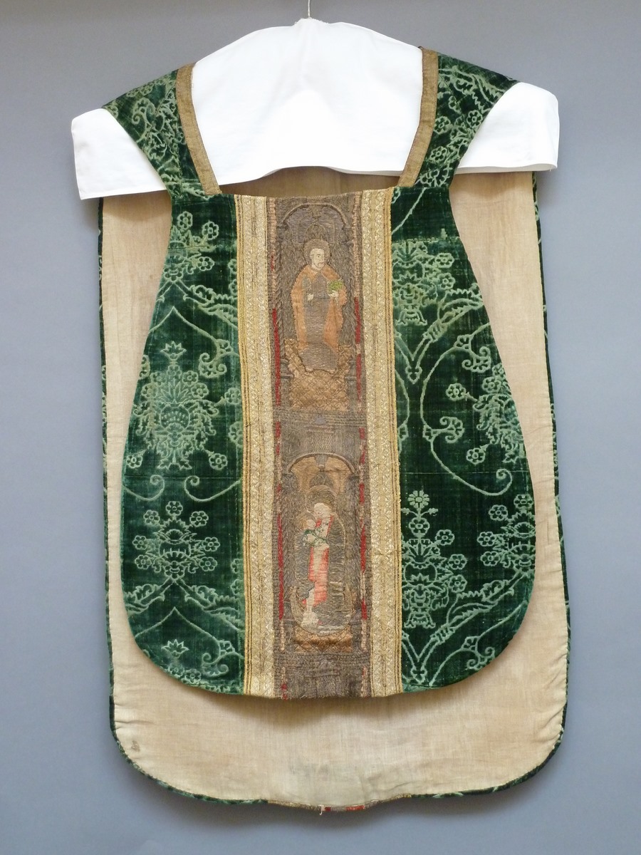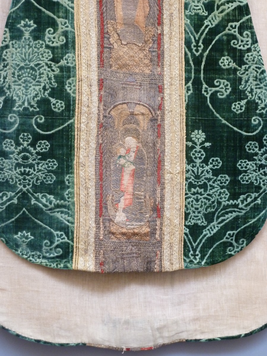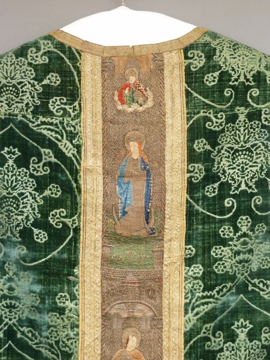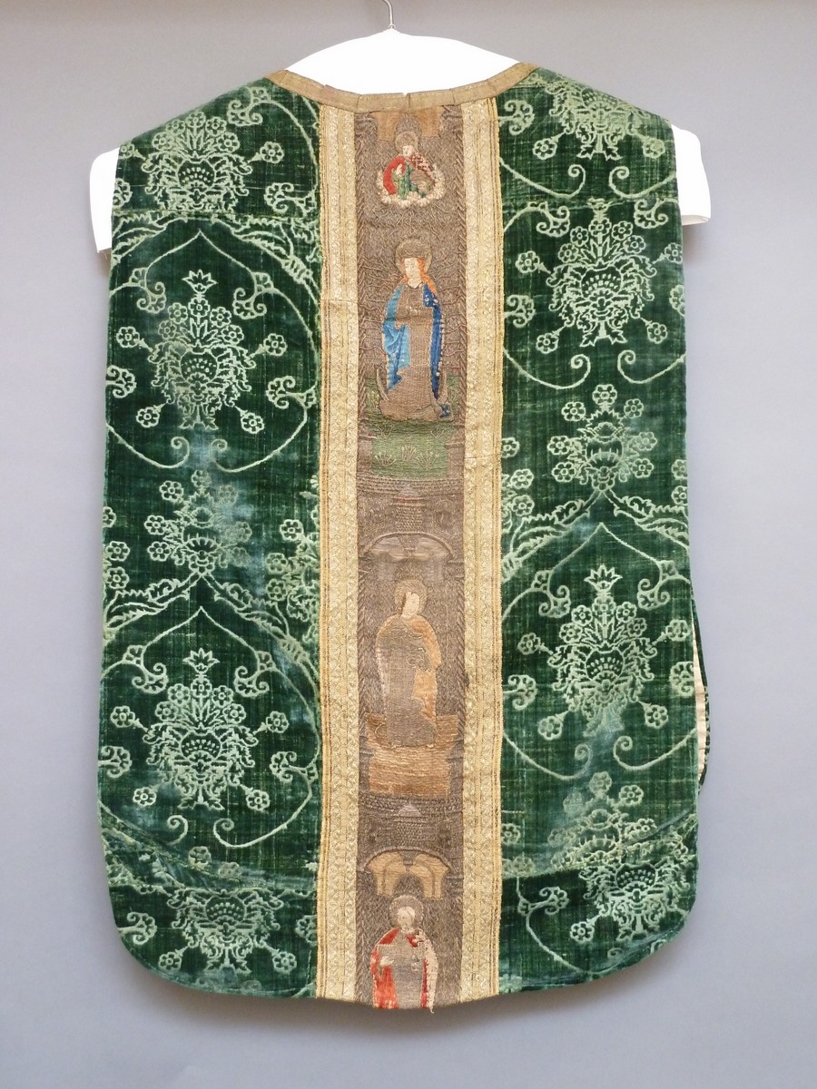 Groen kazuifel met Maria op de maansikkel (2X), H. Bartholomeus, God Vader, Johannes de Evangelist
