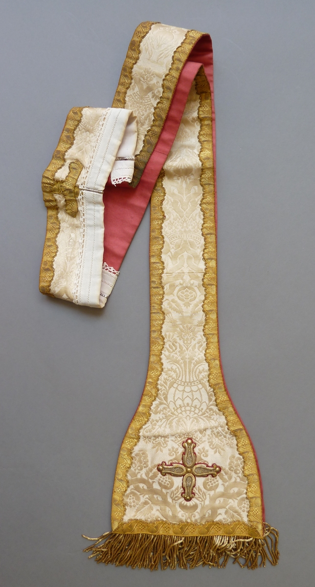 Witte (crème) stola met ingeweven granaatappelmotief