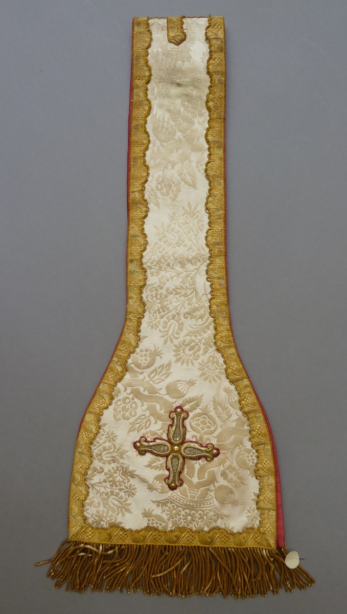 Witte (crème) manipel met ingeweven granaatappelmotief