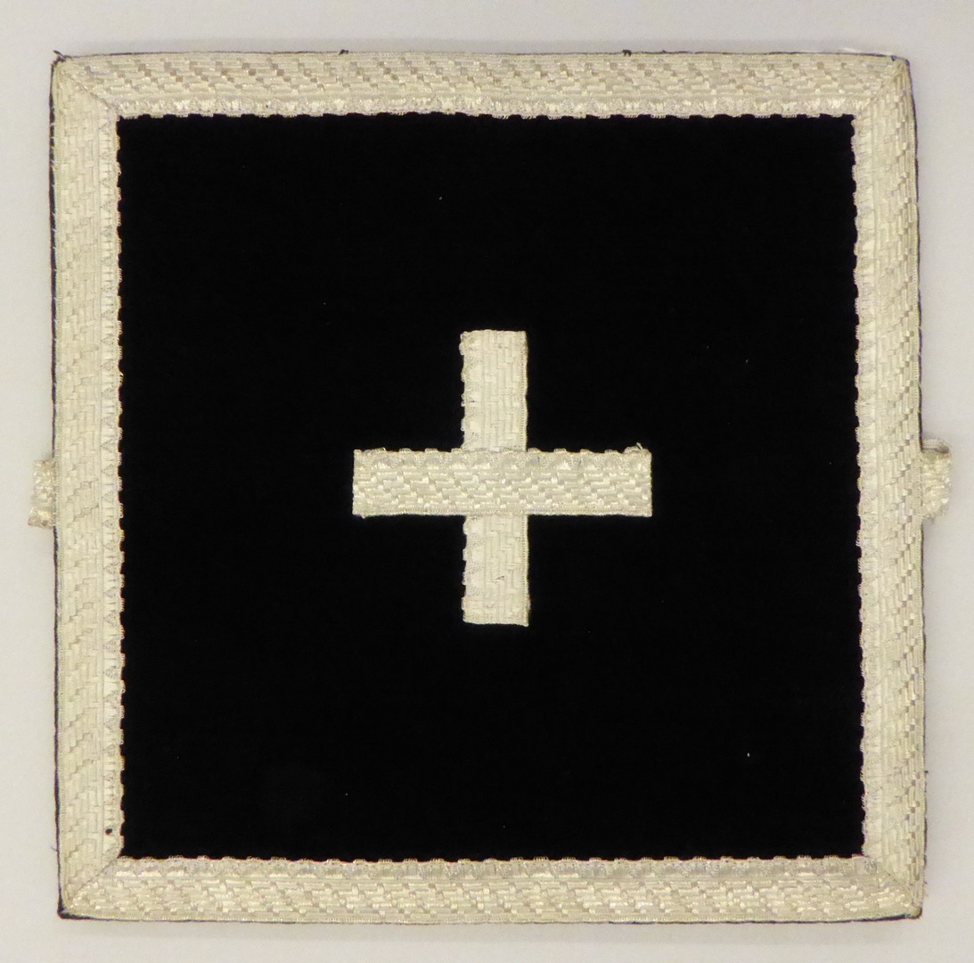 Blauwe beurs met zilvergalon kruisje en afgezet met zilvergalon
