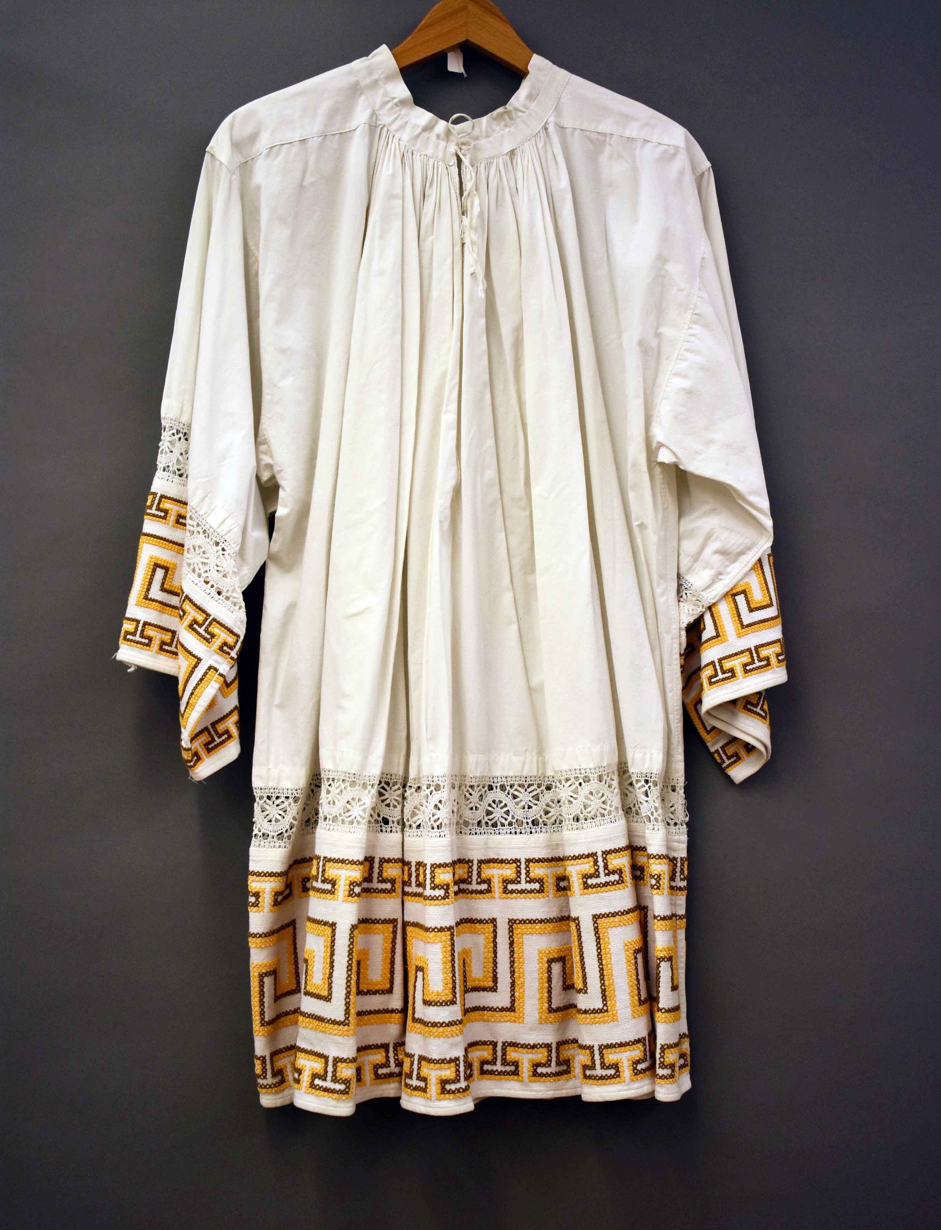 Superplie afgezet met machinaal kloskant en rand linnen geborduurd in meanderpatroon