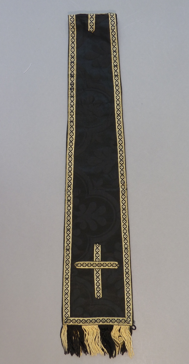 Zwarte manipel afgezet met geel band en geelzwarte franje