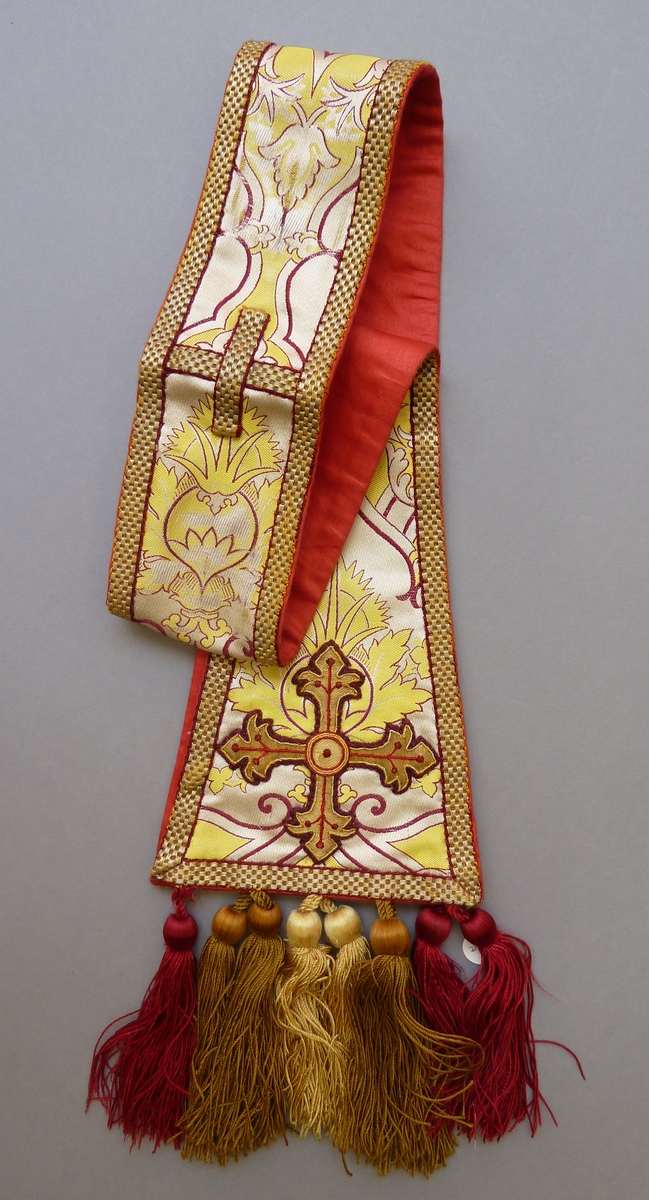 Witte manipel met gele ingeweven granaatappelmotieven