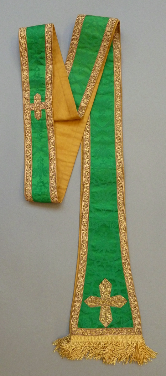 Groene stola met ingeweven vierpasmotieven