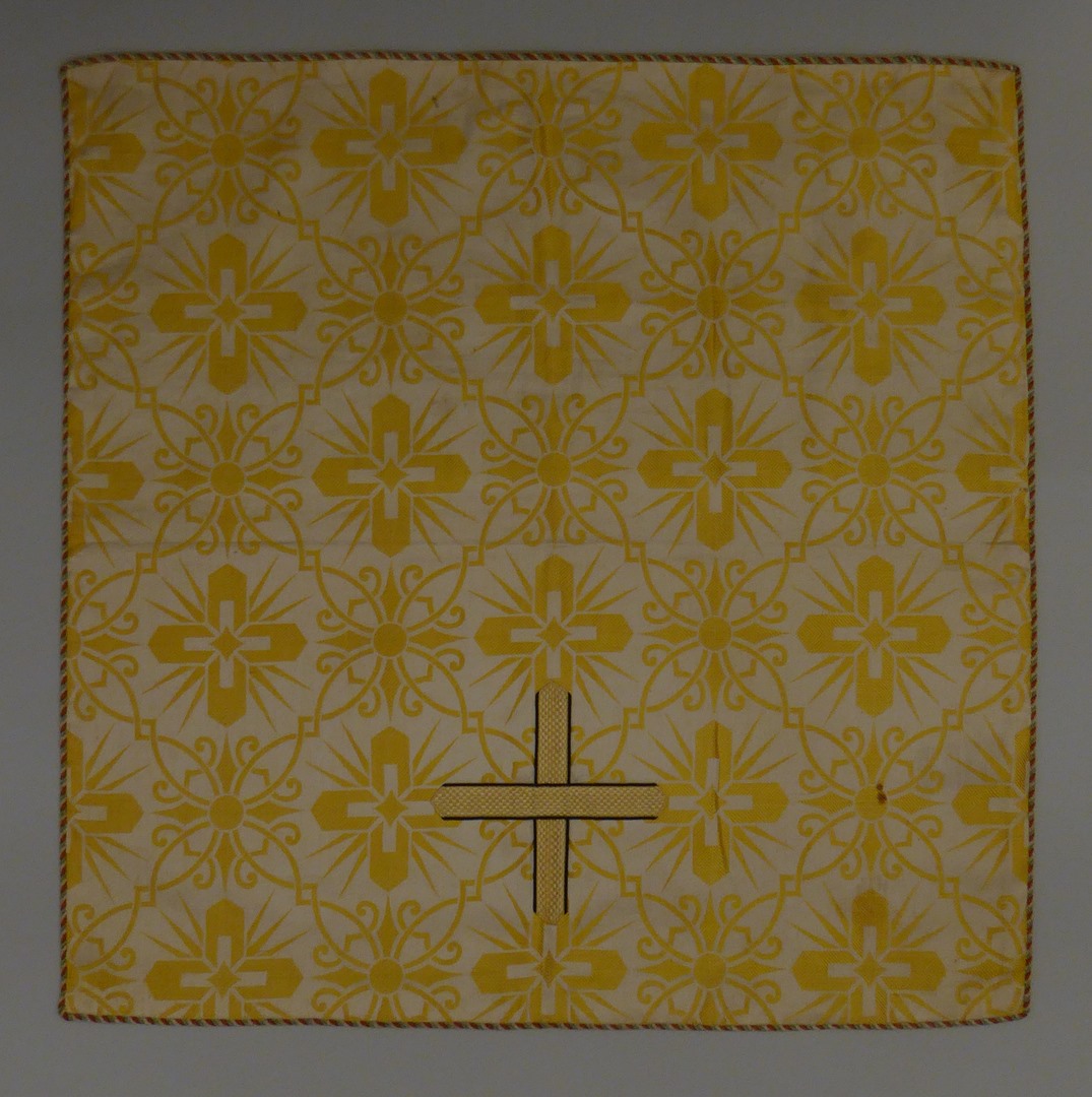 Wit kelkvelum met ingeweven goudkleurige kruisen en kruisje van band