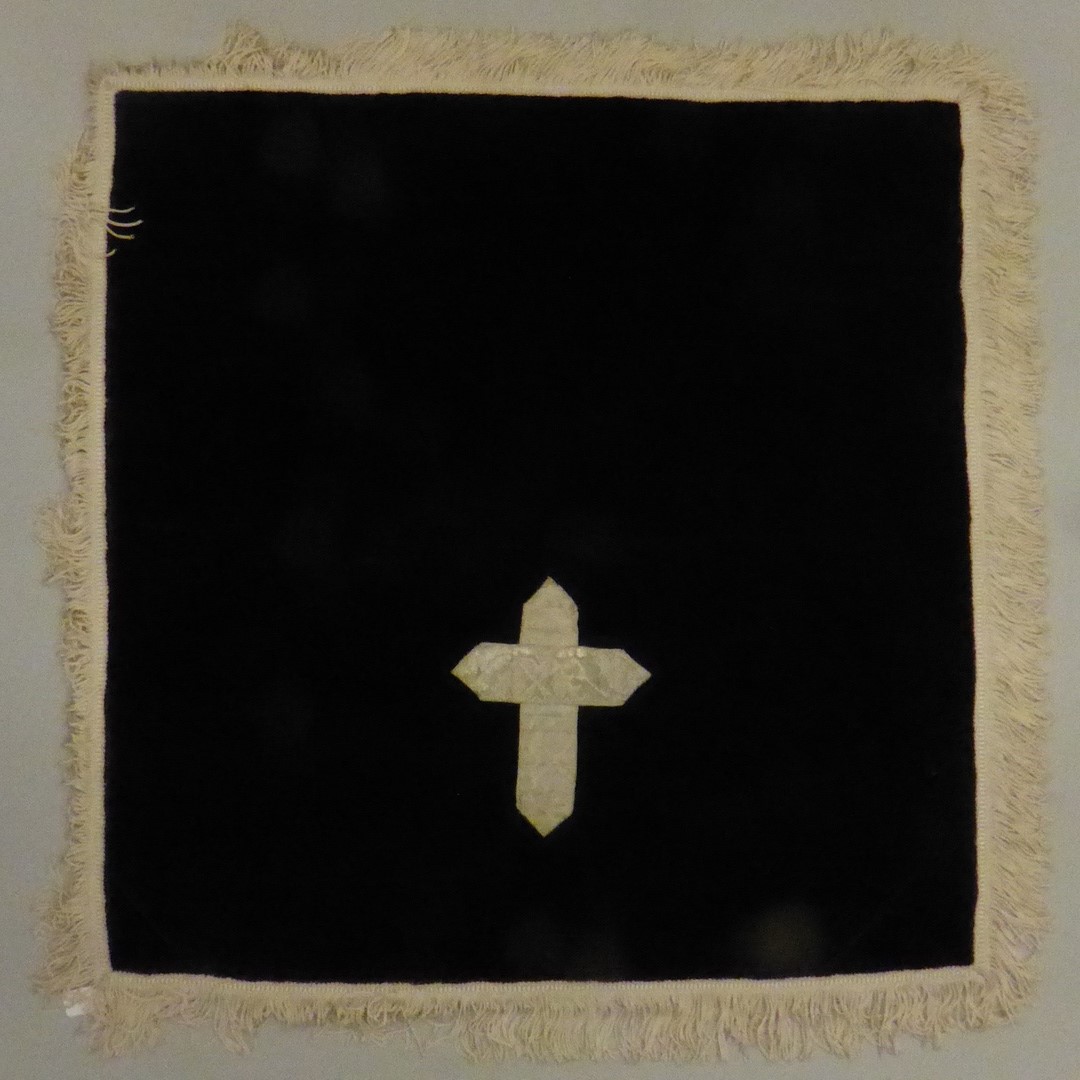 Zwart kelkvelum met wit zijden franje