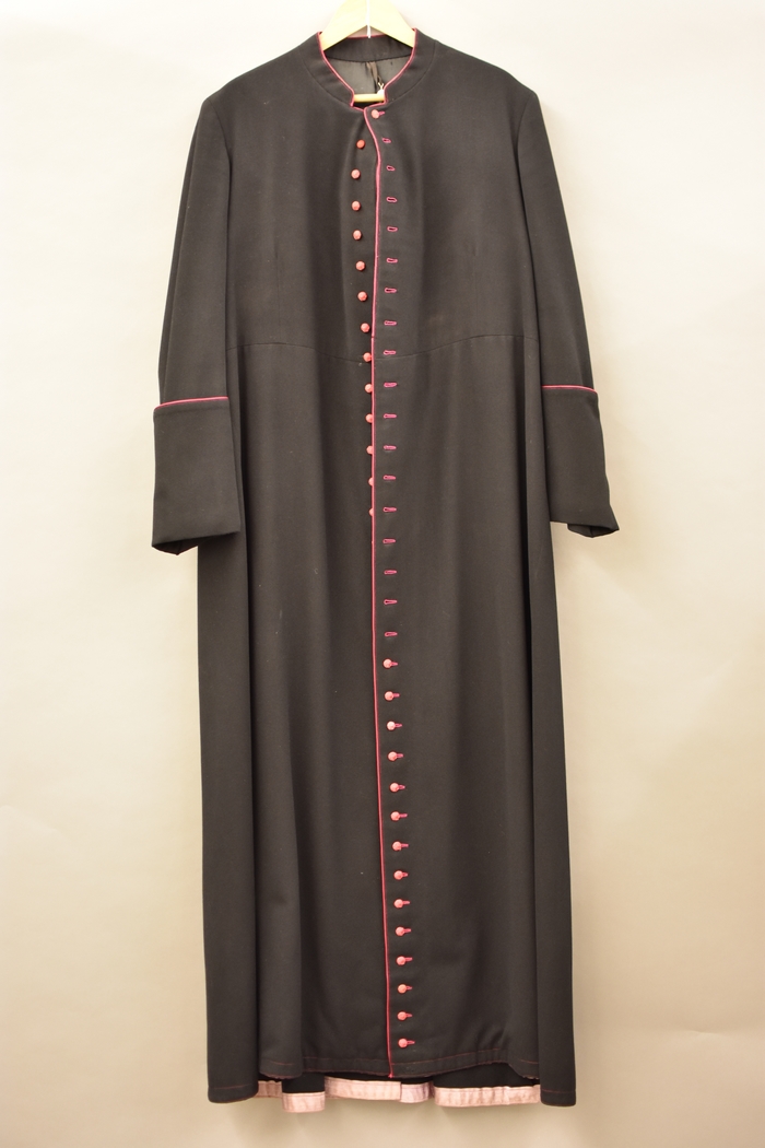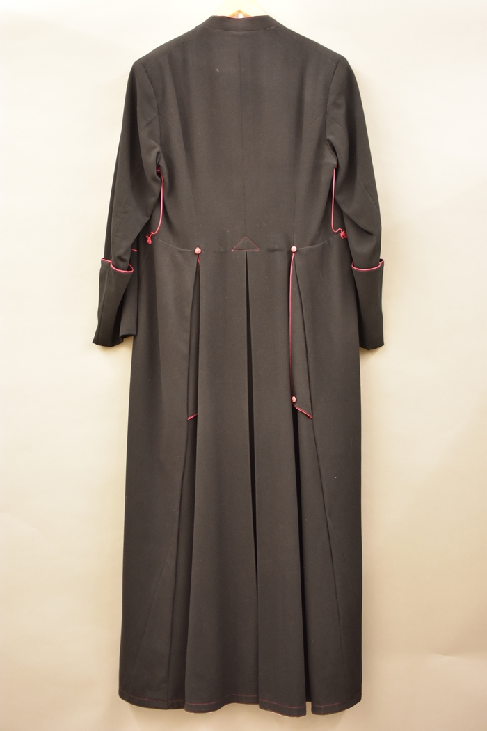 Zwarte toog (half-paars) afgezet met paars corden gesloten met paarse knopen