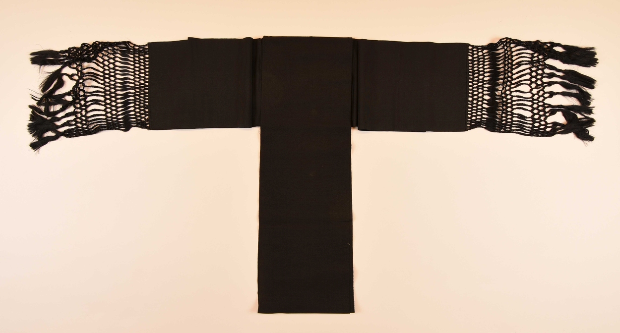 Zwarte sjerp gedragen bij zwarte toga, afgezet met franje