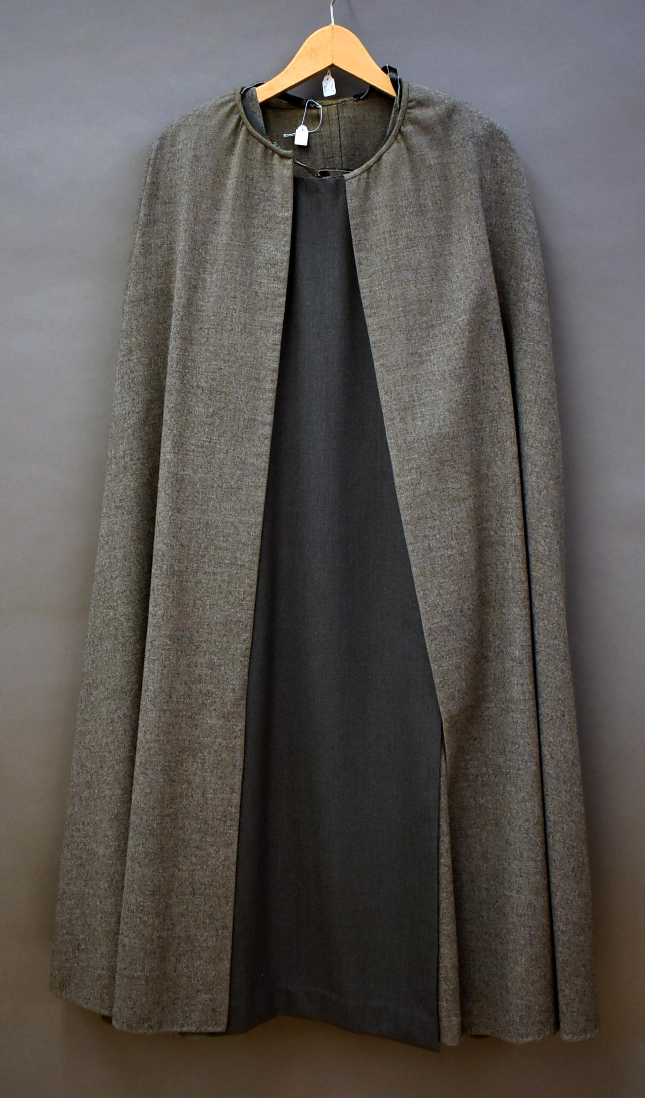 Ordekleding Zusters Birgittinessen: grijze mantel gesloten met bruine houten knoop