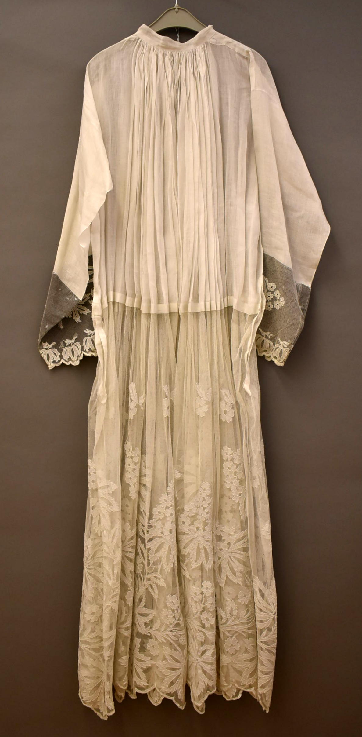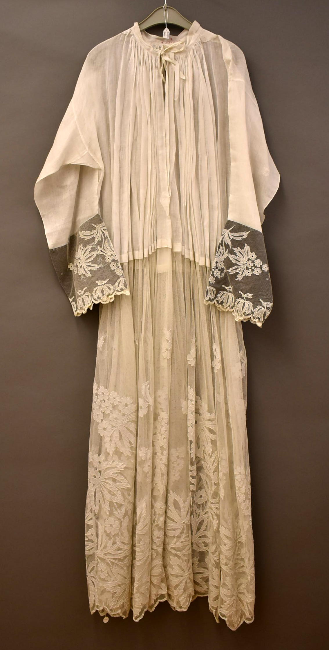 Albe met brede strook applicatiekant met schulprand en bloemmotief