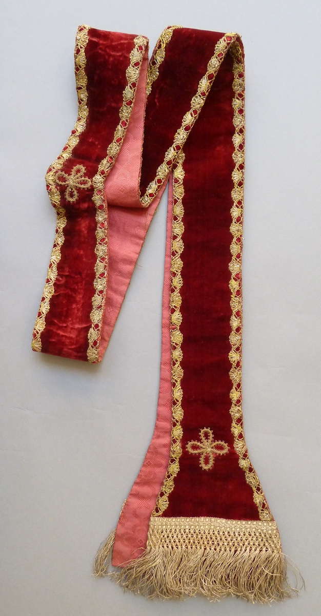 Rode stola met kruisjes van goudkant, afgezet met franje van gouddraad
