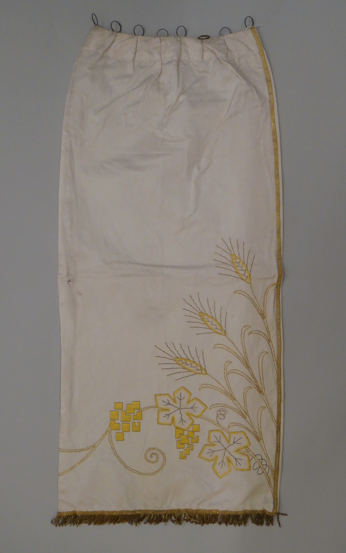 Wit gordijn met korenaren en druiventrossen in gouddraad en gele zijde