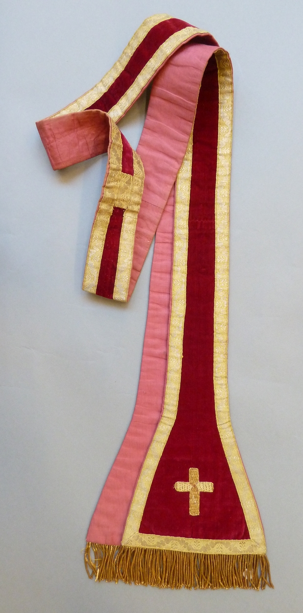 Rode stola met goudgalon kruisjes en rand
