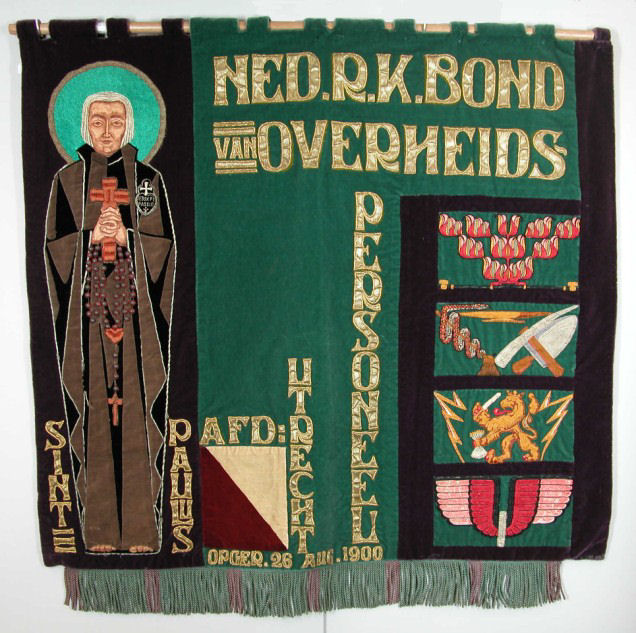 Paars vaandel met Ned. R.K. Bond van Overheidspersoneel St. Paulus en St. Josef