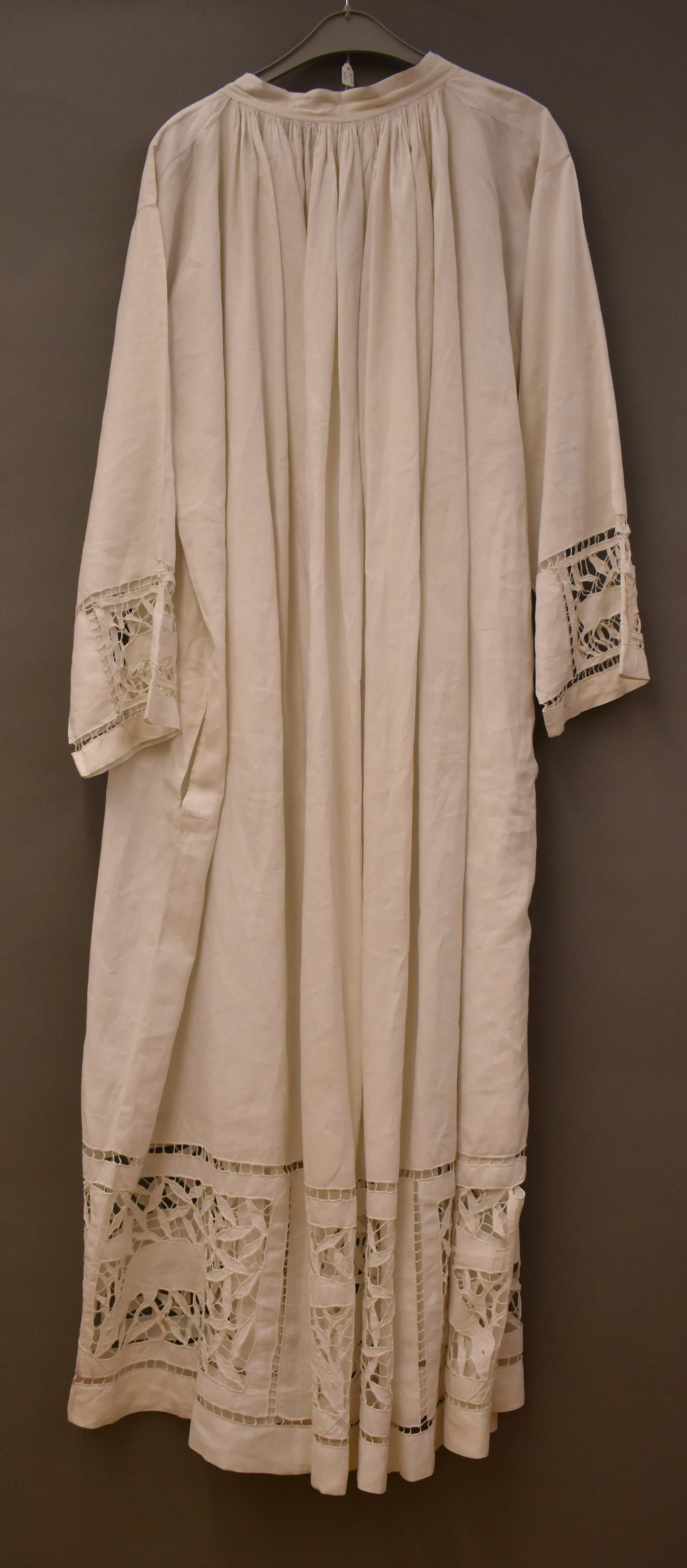 Albe met richelieuwerk met twee herten ter weerszijden van een kruis