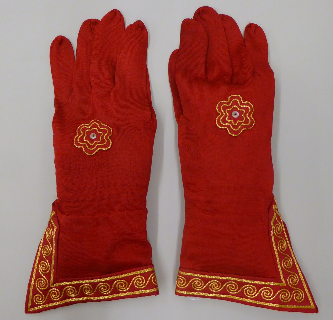 Rode rechterhandschoen, behorende bij kleding kardinaal Johannes de Jong