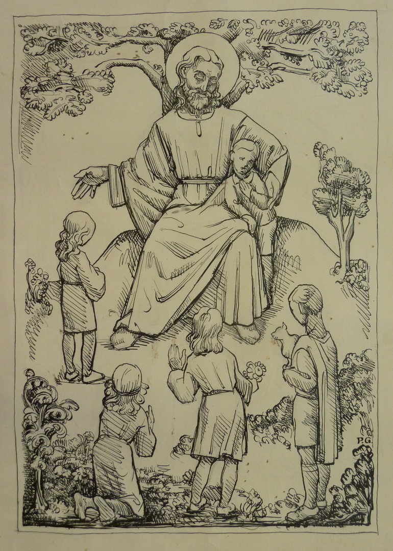 Christus voor een boom, met kinderen om zich heen