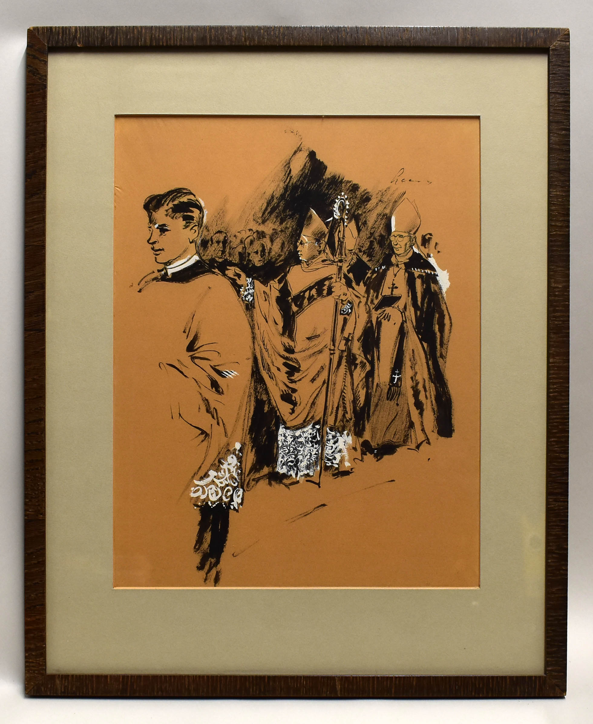 Stoet met kardinaal Johannes de Jong en zegenende bisschop Bernardus Johannes Alfrink, verlaat de Catharinakerk (Utrecht)