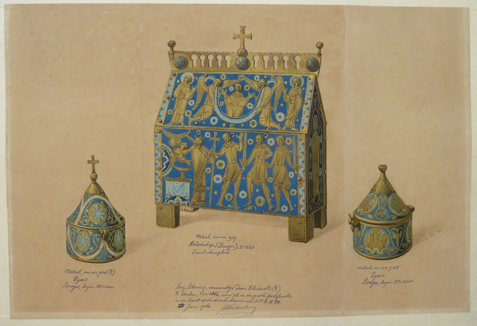 Reliekschrijn ABM m907, pyxis ABM m905 en links een tweede pyxis, enigszins lijkend op ABM m906