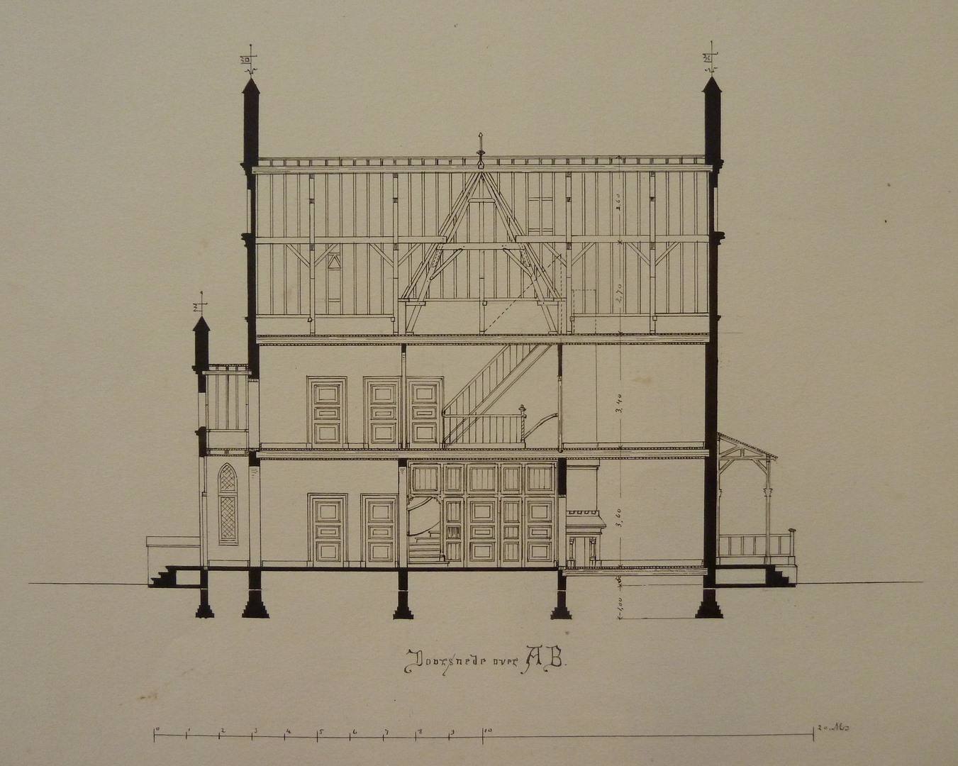 Ontwerp voor pastorie(?), doorsnede over AB