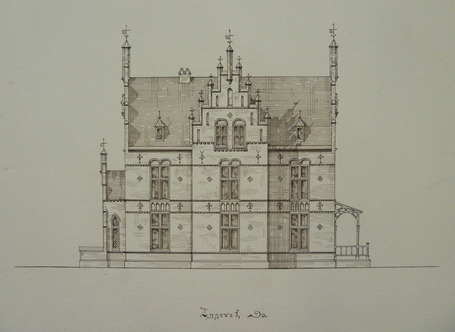 Ontwerp voor pastorie(?), zijgevel