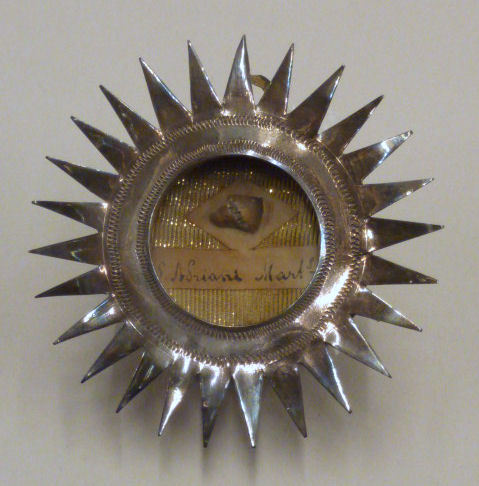 Reliekmedaillon met stralenkrans met reliek van H. Adrianus