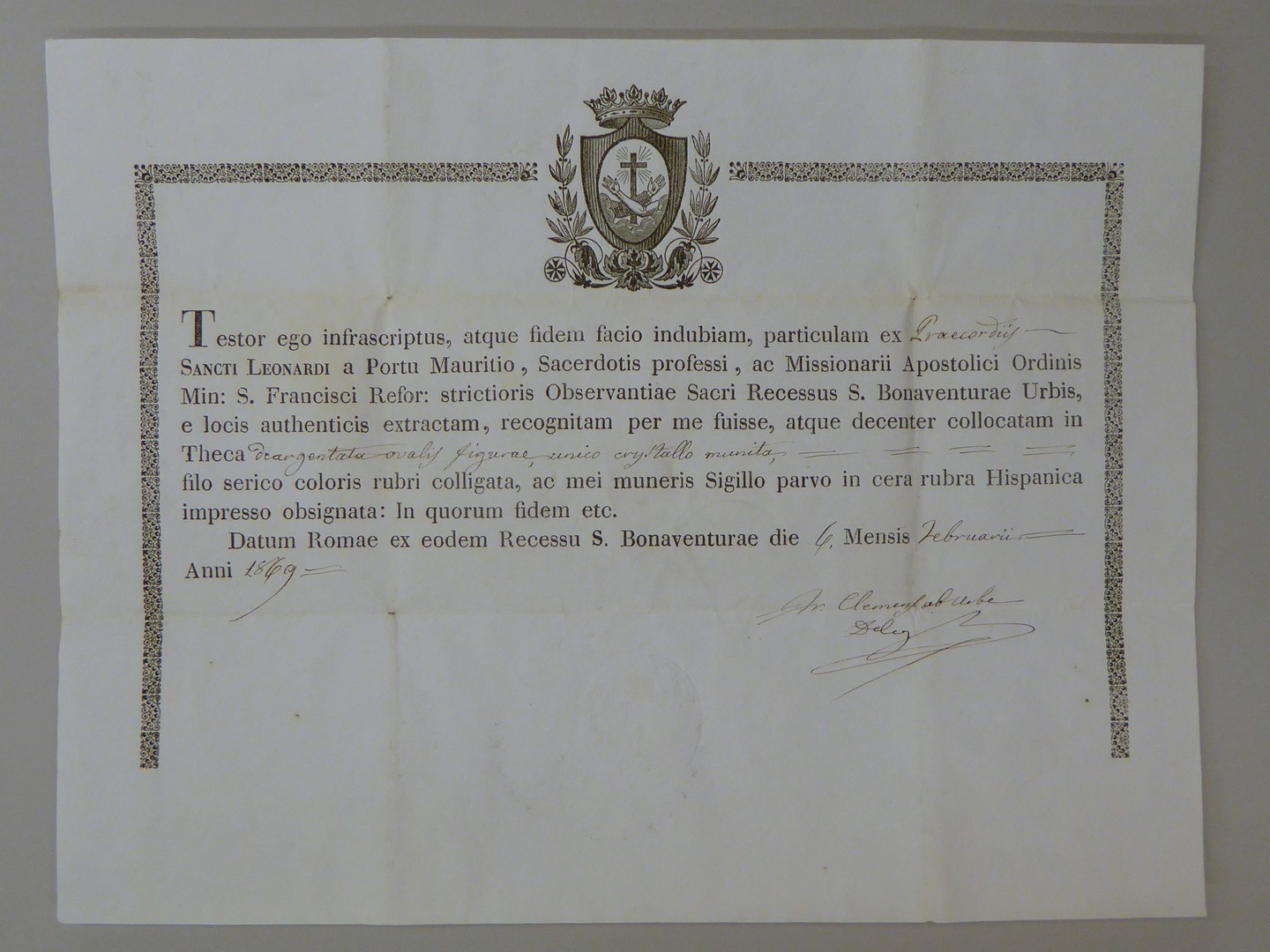 Echtheidsverklaring bij reliek van H. Leonardus