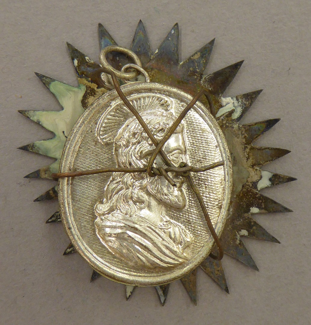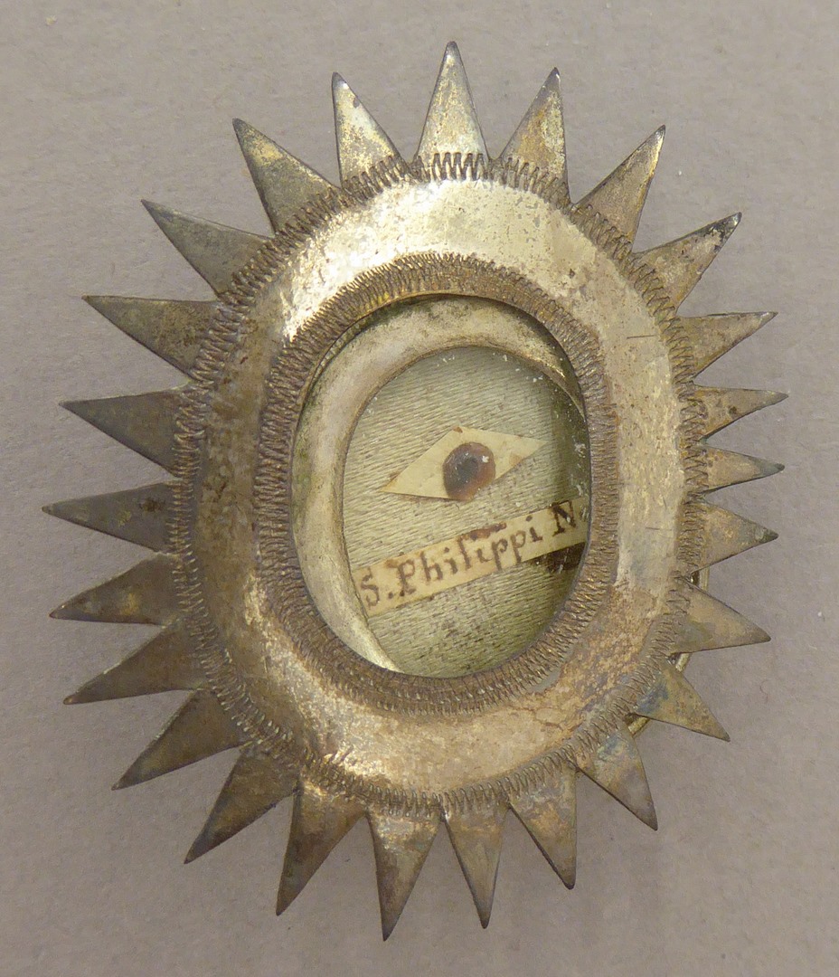Reliekmedaillon met stralenkrans met reliek van H. Philippus Nerius, op achterzijde Christus