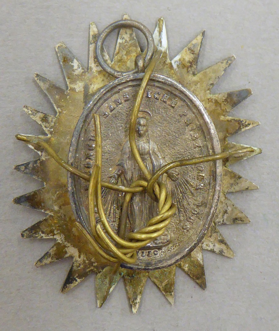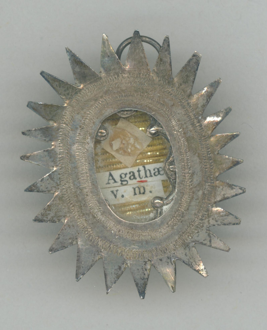 Reliekmedaillon met stralenkrans met reliek van H. Agatha, op achterzijde Maria