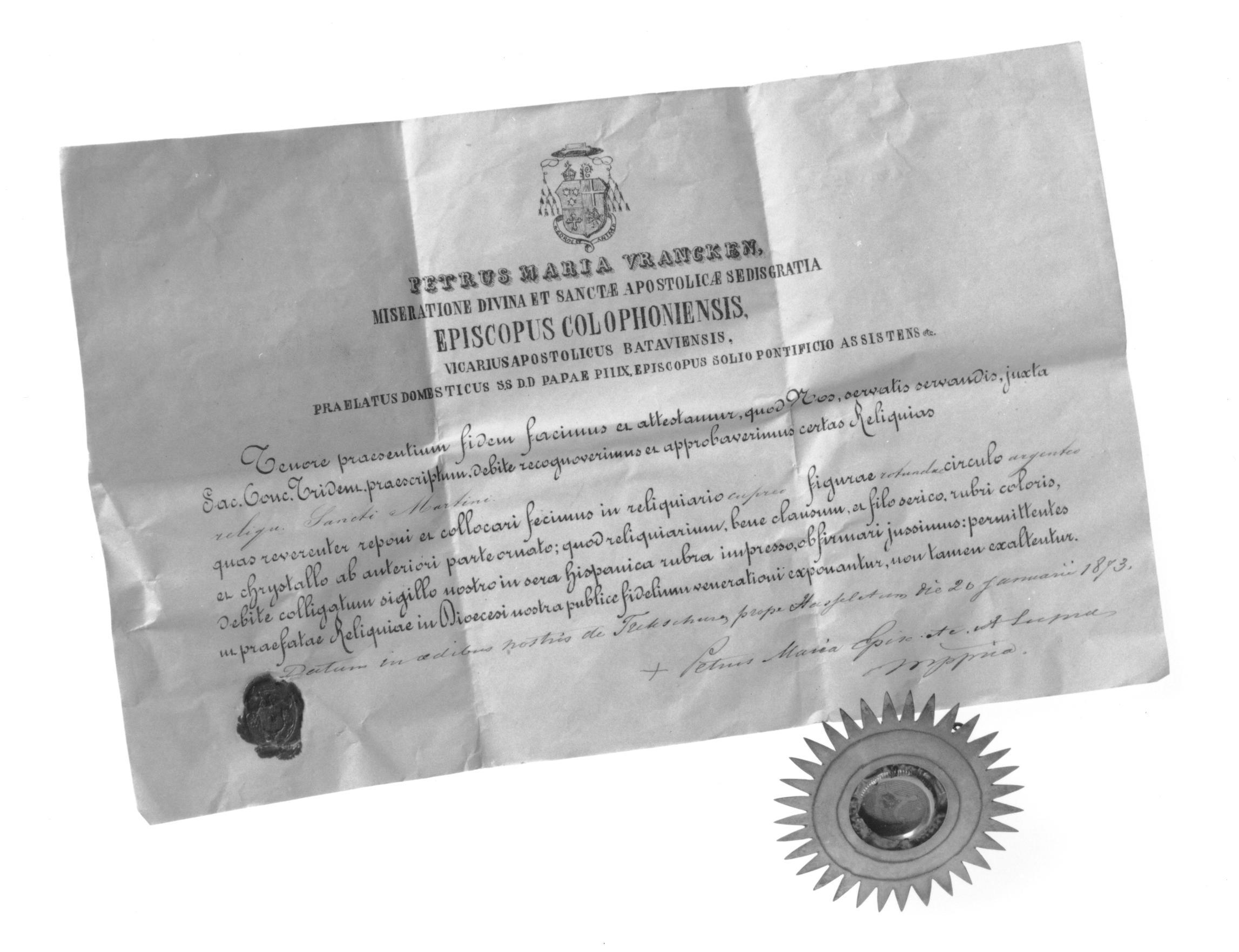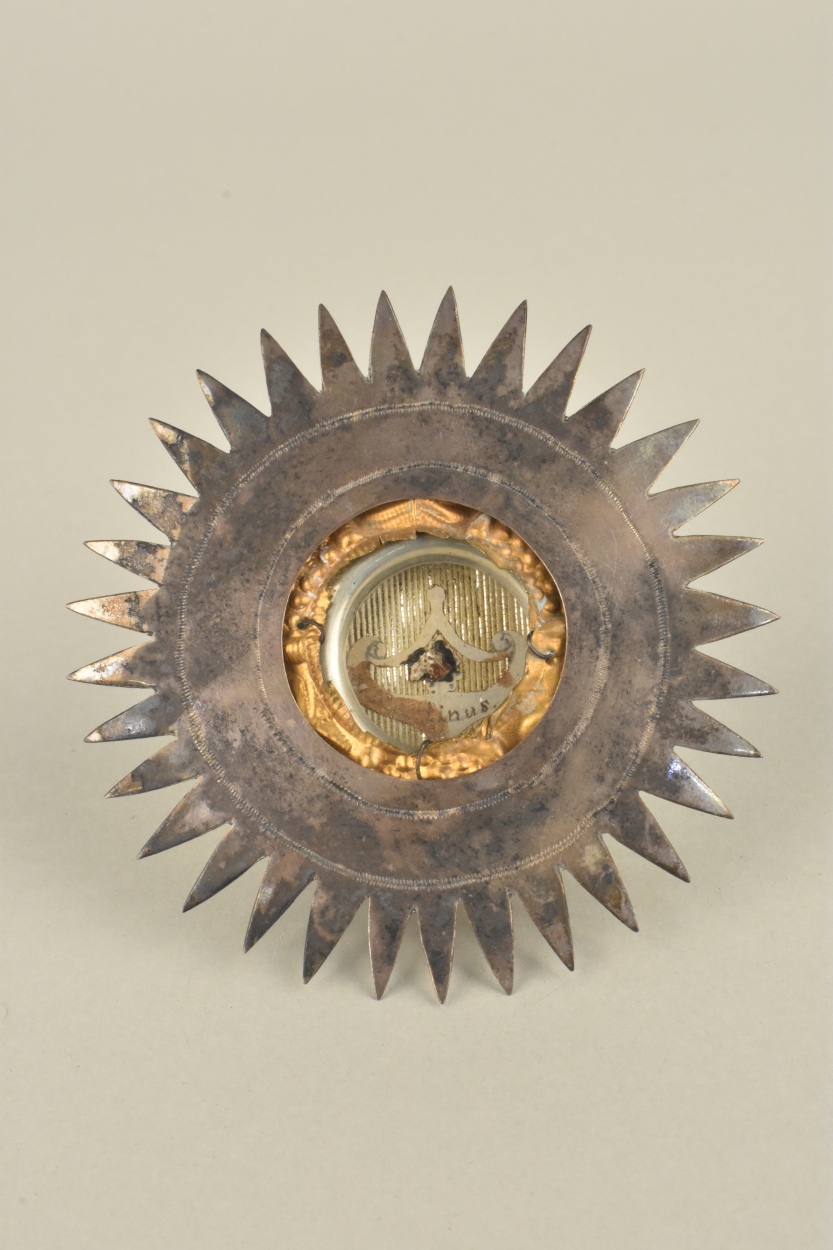 Reliekmedaillon met stralenkrans met reliek van H. Martinus